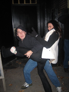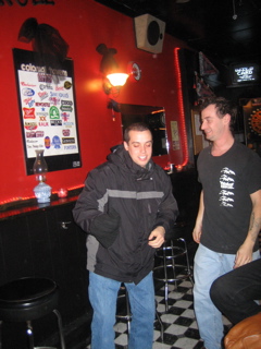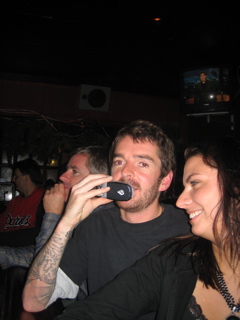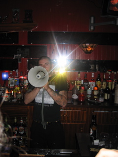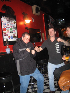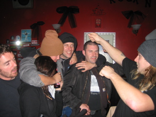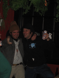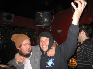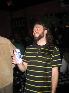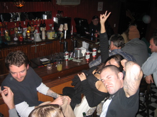 I poured a beer down Mazzas back. He thought John Haas done it and turned around and poured a beer all over him. Heh.