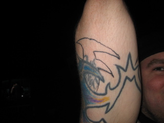 Freddy done some work on an old tat of Johns. Freddy was wasted.
