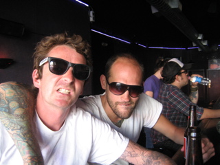 We ran into the rest of Hightower in the streets......Jake and Dave trying on J Dugs wooden spectacles