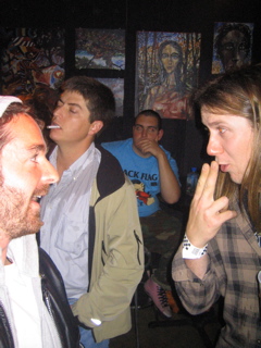 This geezer ruled.....He was mangled and i think at the wrong bar.....He chewed and munched on a cigarette the whole night.