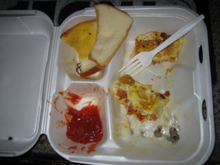 I got lunch at Mels. Chourico and Cheese Omlette with white toast & Home Fries. More like Chourico and Cheese Omellete with white greasy bread and boiled potatoes. It was so greasy the grease melted the to-go box. No big deal.