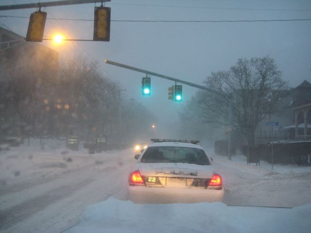 Mazza taking the only road in Newport that isn't plowed.