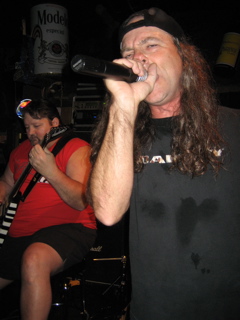 That night we checked out Gunnerdown......metal cover band extrordanaire........the lead guitarist is so big now he sits on a stool the entire show.......while resting his foot on his tool box...........note the singers awsome cell phone clip.........these guys absolutley rule