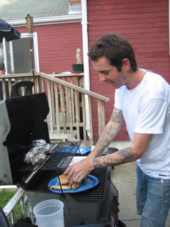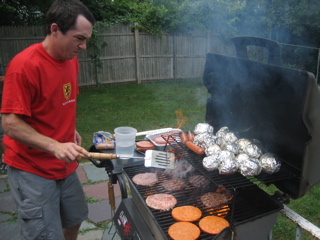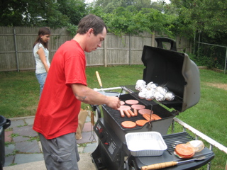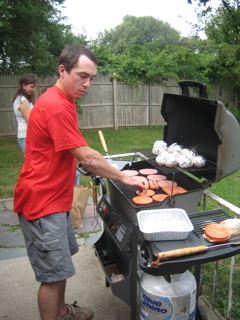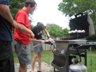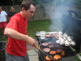 The grill-master for the day is Ricky.
