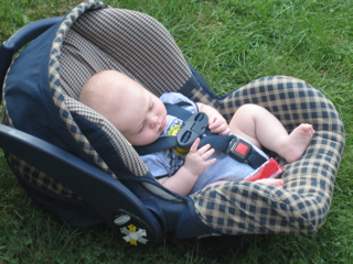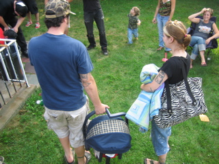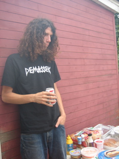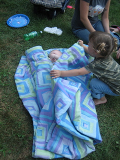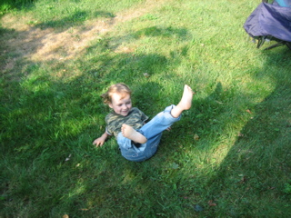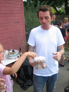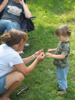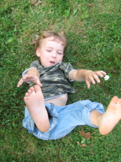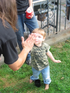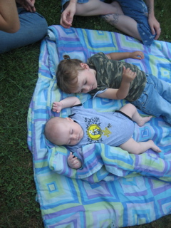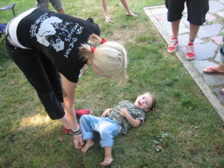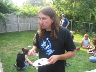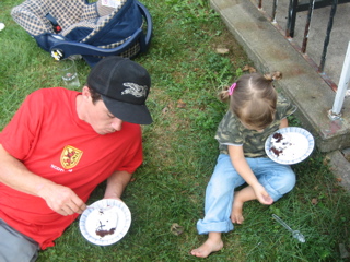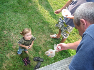 Logan discovered there was food at the cookout. Duh.
