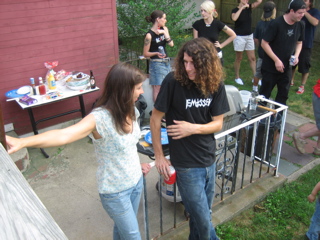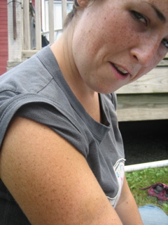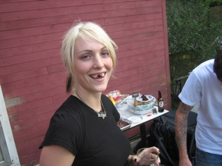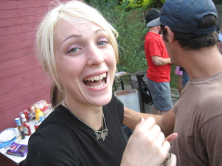 Candace rolls here sleeves up for the cookout.