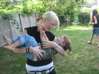 Then gets her in some gnarly wrestling move. I think this is the camel clutch if I remember correctly.