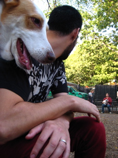 After we all trooped to the dug park to watch Chunk run circles round everyone.........we sat right in the middle of the play zone and tons of new dugs came up and bro'd with us