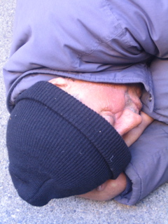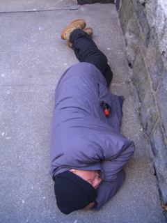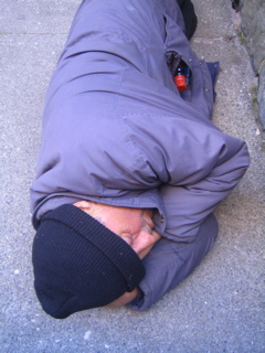 I closed up shop at 6 and this geezer was out cold accross the street............Sweet dreams of Popov and cigarettes