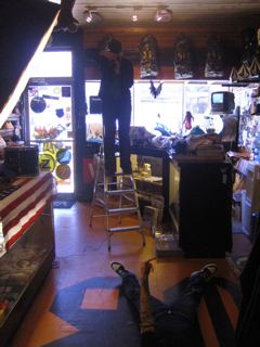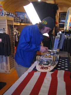 later on myra came from boston to set up for a photo shoot of the lads at the shop .
