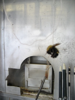 This is hard to see cos it was really hard to photo.....theres a bumble bee tied to a string flying in circles ........he was going berzerkers