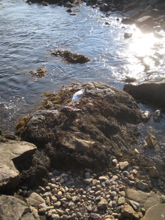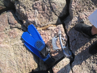 This is where we were diving. We see fish, rocks and seaweed in there.