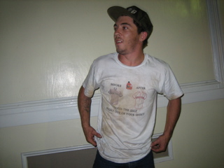 Brandys shirt was splattered and only one of her shoes glowed? Good job Weibs.