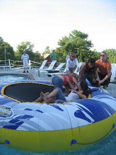 They had a Slip n Slide with a tiny kiddie pool at the top filled with baby lotion......only a few birds went for it.it was mostly the lads