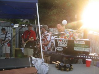 They had set up a slurpee machine that poured out margarita mix......tons of kegs.....2 bartenders mixing shite up and a geezer that mustve grilled 600 dogs and burgers