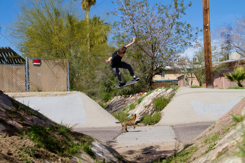 Conor tried to ollie this gap and put a beating on himself. Chase tried to help but it was no good.