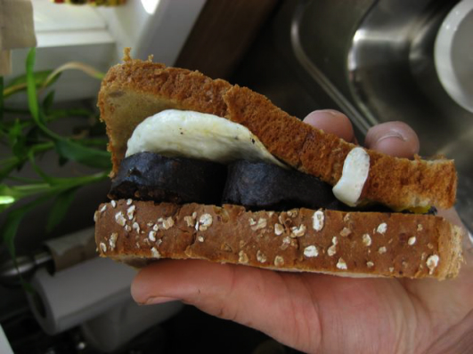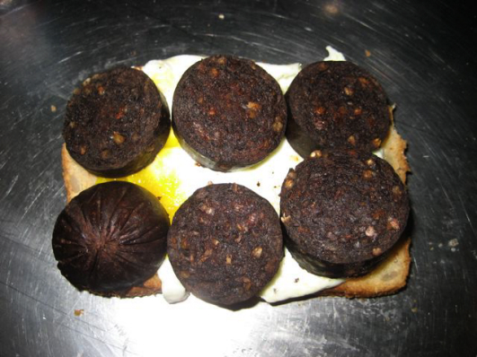 Black Pudding and Egg on a sandwich. Mmmmmm.