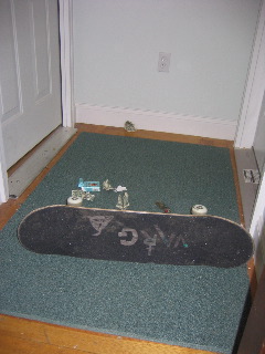 I came home to this scene in my front hallway, cigs, dollar bills , lighter and a skate