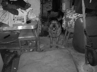 Then we found out why he ran away, while we were at jimmys for lunch Angus was eating Davey's socks in the Basement