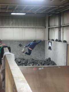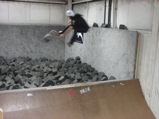 Weibs with his favourite trick, the Benihana. If that stupid foam wasnt there, he would have landed it.