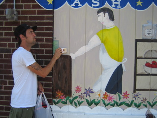 eamon gets smokes from ash mart. this is the most laterd wall painting i've ever seen. look at the geezers arm!