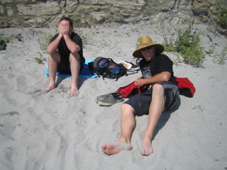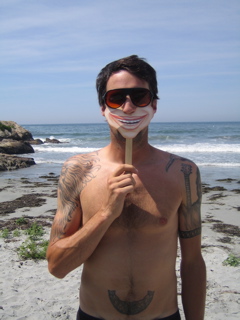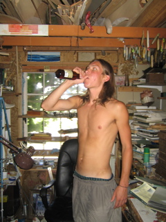 on the way back we laterd the drivers car with a horrible sticker we found. hang ten island windwankers.!!