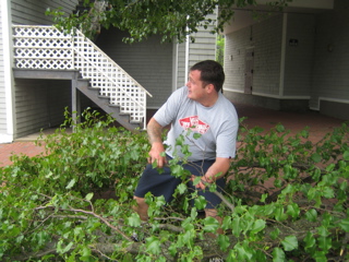 the tree's next to the shop got mangled by some 18 wheeler today.