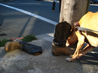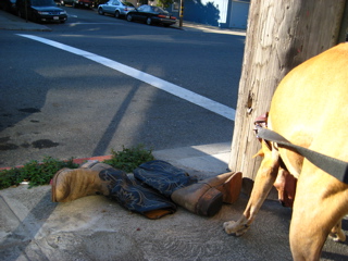 After 1000s of miles and about a million mp3s we made it to California and to SF....where first thing was to walk my pal Sensi......2 minutes into the walk we found a dead mans boots