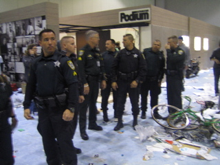 cops getting ready to rush the volcom booth that looked like bosnia