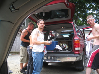 We met up with the worst dudes ever. Here they are loading 30 packs into the cooler for ther road.