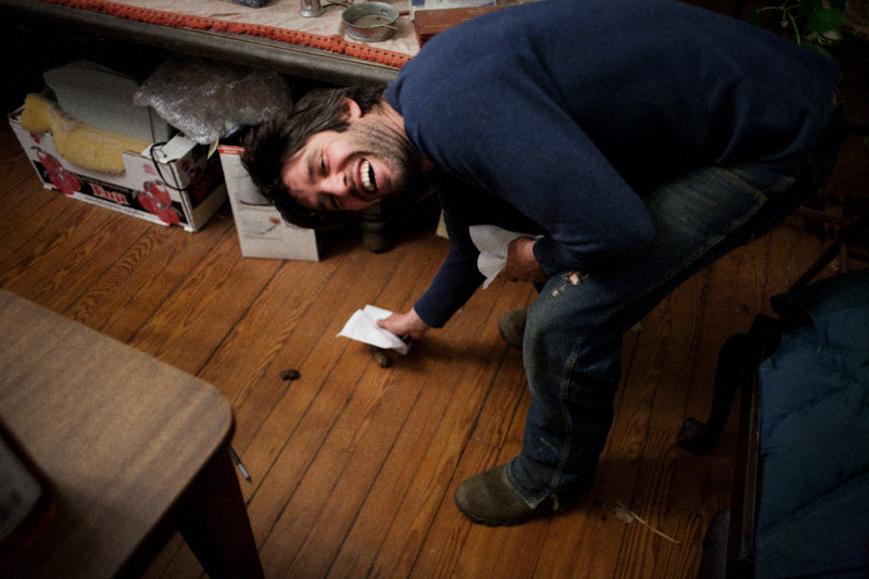 Pickin' up dog turds.