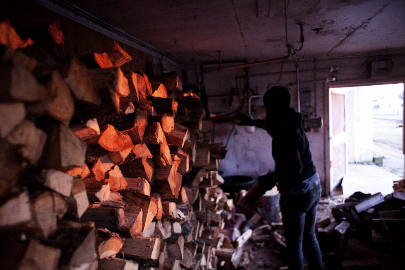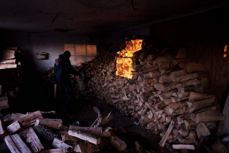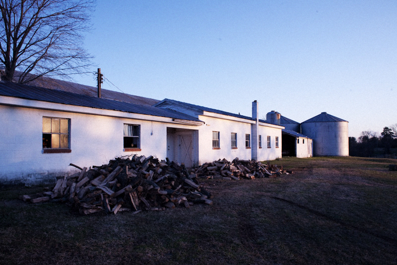 The farm used to be a dairy farm. This is where the cows were milked. Now it's just used for storing wood.