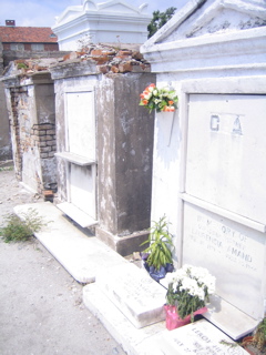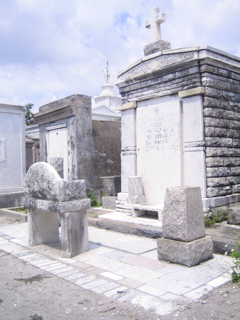 We found the grave of the Voodoo queen Marie Laroux.......there were all kinds of wacky trinkets and sacrafices all around her grave.....