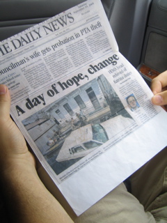 This is Edward......hes been a cabby all his life....he told us when the storm hit he didnt want to leave his house of 31 years.....The army and the police came in a boat and forced him to leave everything behind. The newspaper article showed his house under water and his taxi cab destroyed......he spent the next few months being moved around from Baton Rouge to Texas......He saw it all ..........now hes back working in a new cab but his wife wont come back to their house......he told us the craziest stories