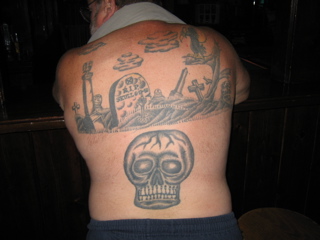 This is our new bro "Skull" He's fuckin crazy. He has a graveyard scene tat on his back with his own name on the grave stone.