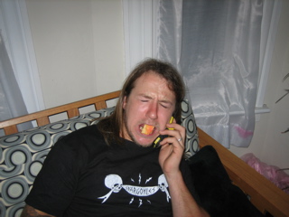 Brandys mum playing air guitar to "I Am The Wargod" by Destroyer 666. Noooo big deal.