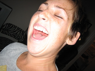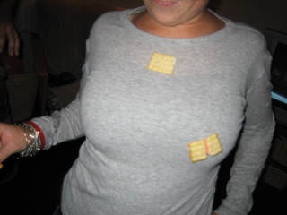 Candace with cheese and crackers on her knackers.