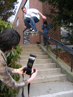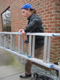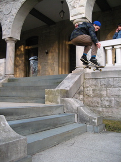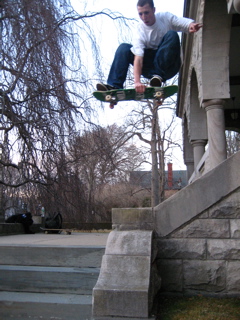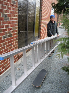 The run up to the Tech 9 was soaked so his idea was to lay this huge ladder he found and run along each rung and then jump on his board...thus avoiding the wet ground