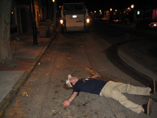 Skip lay down in front of the street sweeper in an attempt to keep the streets dirty.