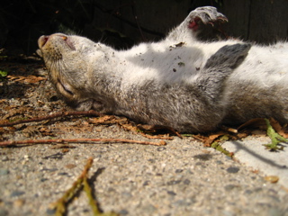 Last night was my birthday and when i got up this morning there was a squirral passed out on my doorstep.............he was out cold.........i shouldve draw on him