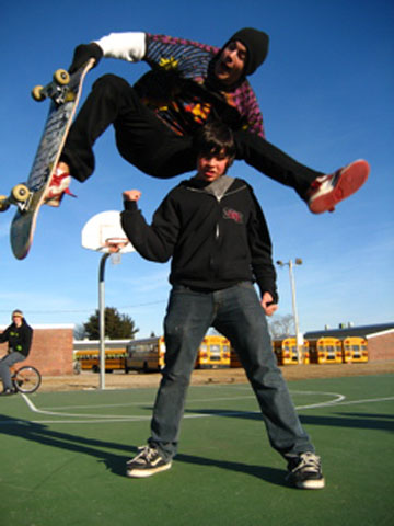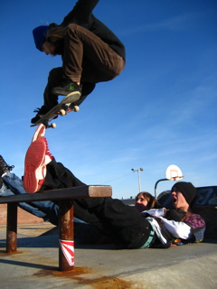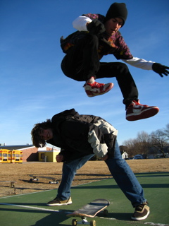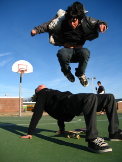 Nikie Mikie jumps while Rocketboy gets his Yoga on