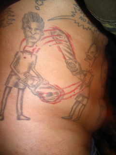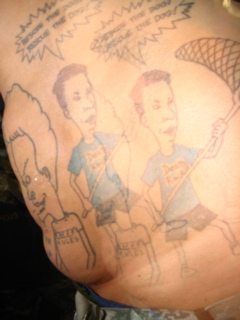 I got Pierre to show his Beavis and Butthead tattoos.........sensational