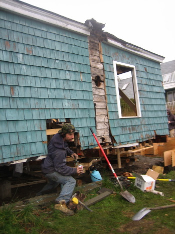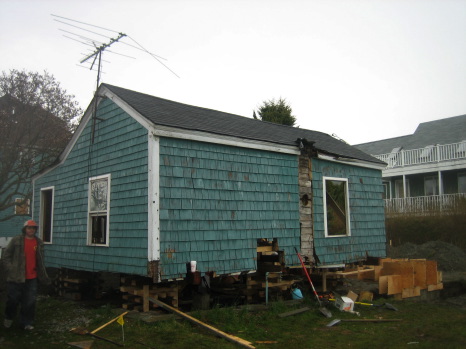 We lifted this shit-house to replace the foundation. It should be knocked down but can't be re-built if it is demolished.