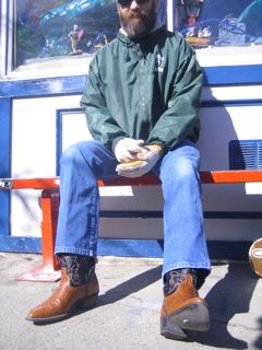 joe walsh (store detective) was sporting the raddest cowboy boots. he's a bro!!
