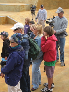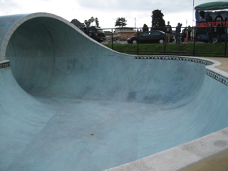 Cops and City officials cut the red tape and finally they opened the park to people with skateboards .........