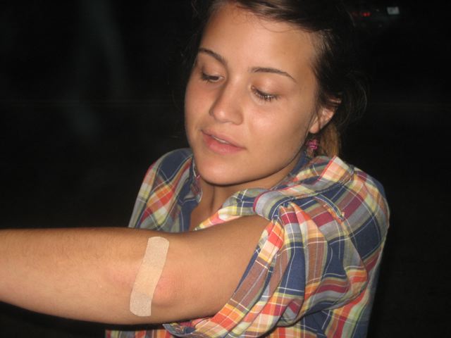 Shes ok! Just a bandaid and a snapped tail! She was mostly bummed about her cruiser.