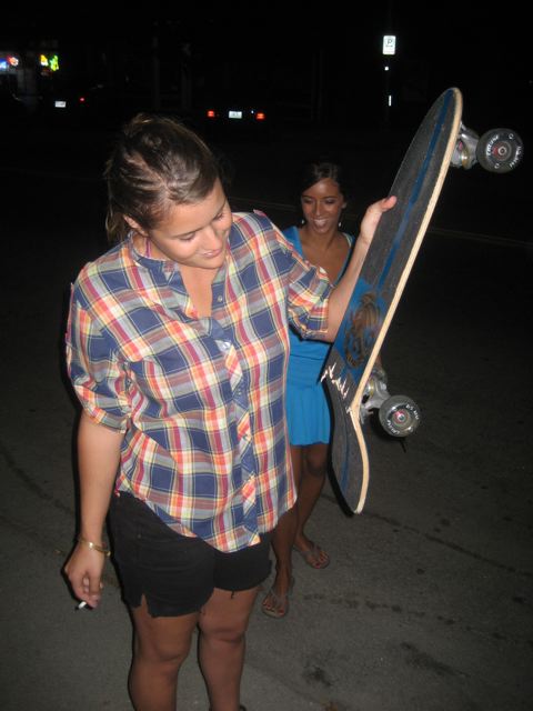 Zoe was skateboarding and got hit by a car on a crosswalk.